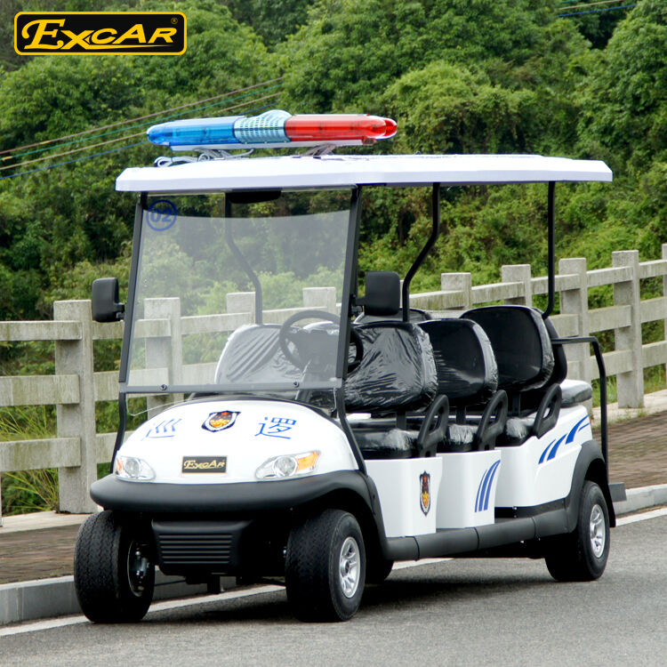 Voiture de patrouille électrique 4 places blanche avec logo personnalisé 3,7 kW 48 V Batterie Trojan Voiture de patrouille électrique